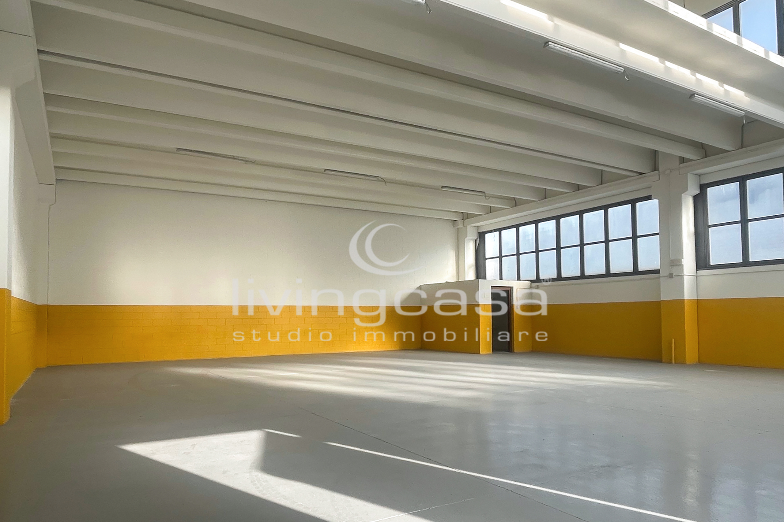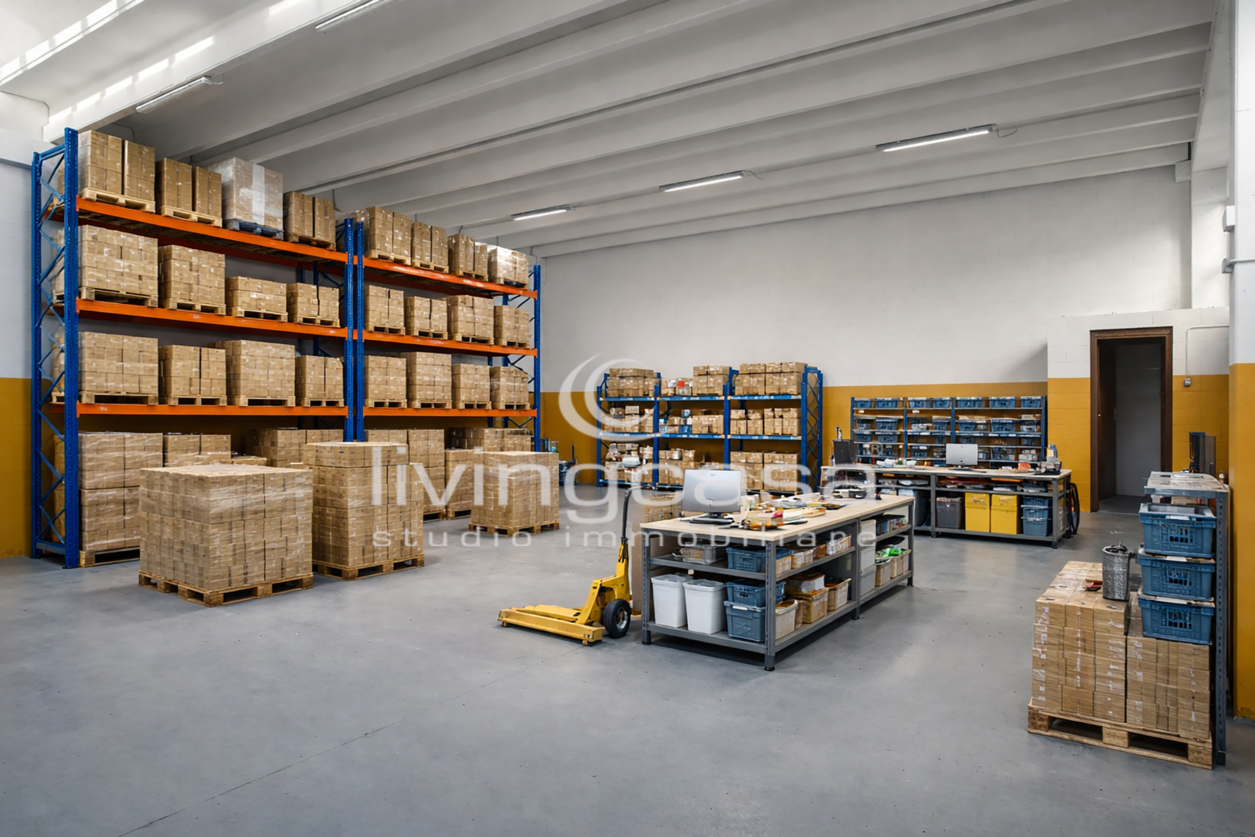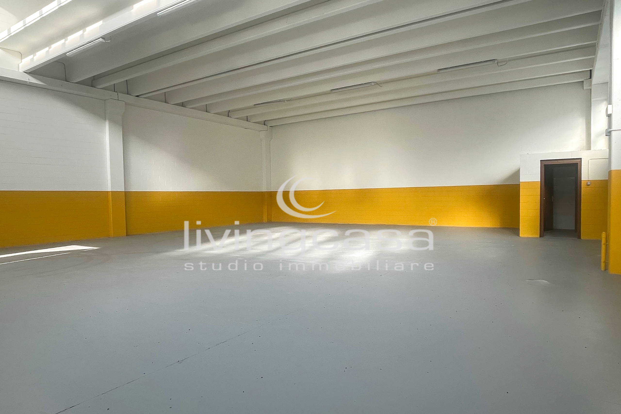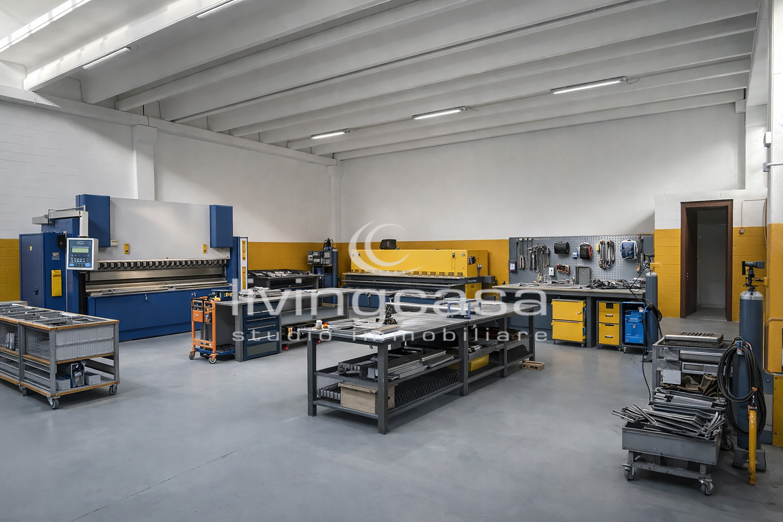 il capannone è molto luminoso, è stato appena imbiancato e presenta una pavimentazione nuova — condizioni che permettono di lavorare fin da subito in uno spazio ordinato, pulito e professionale.