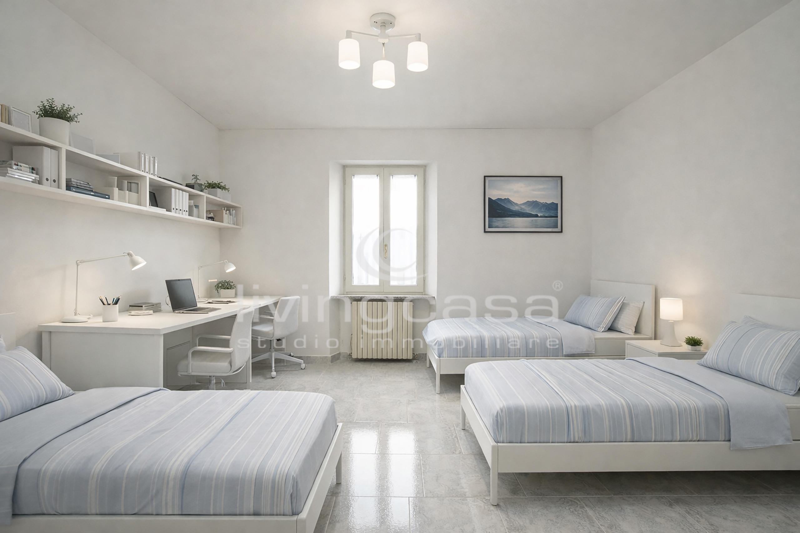 L’altra è la camera dei figli come oggi è sempre più difficile trovarla: qui entrano comodamente anche tre letti, un armadio capiente e una scrivania, lasciando comunque spazio per muoversi, giocare e crescere senza dover cambiare casa dopo pochi anni.