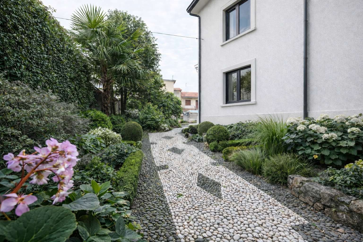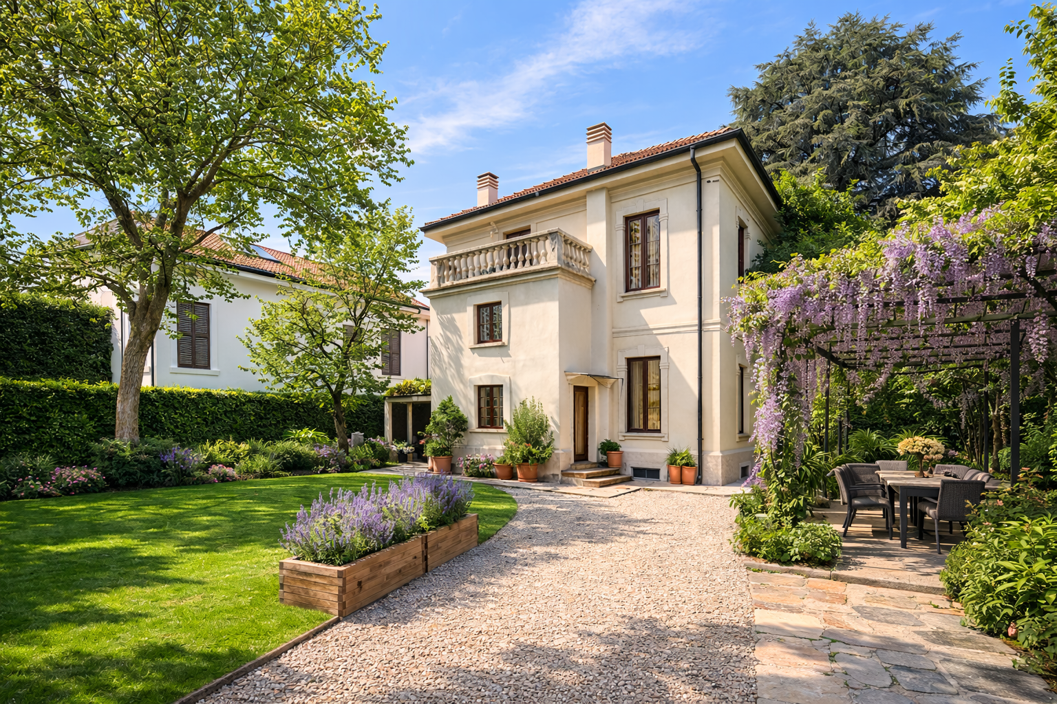 La villa è circondata da circa 650 mq di giardino privato, uno spazio prezioso per vivere all’aperto, organizzare pranzi estivi, creare un’area relax o semplicemente lasciare ai bambini la libertà di giocare in sicurezza.