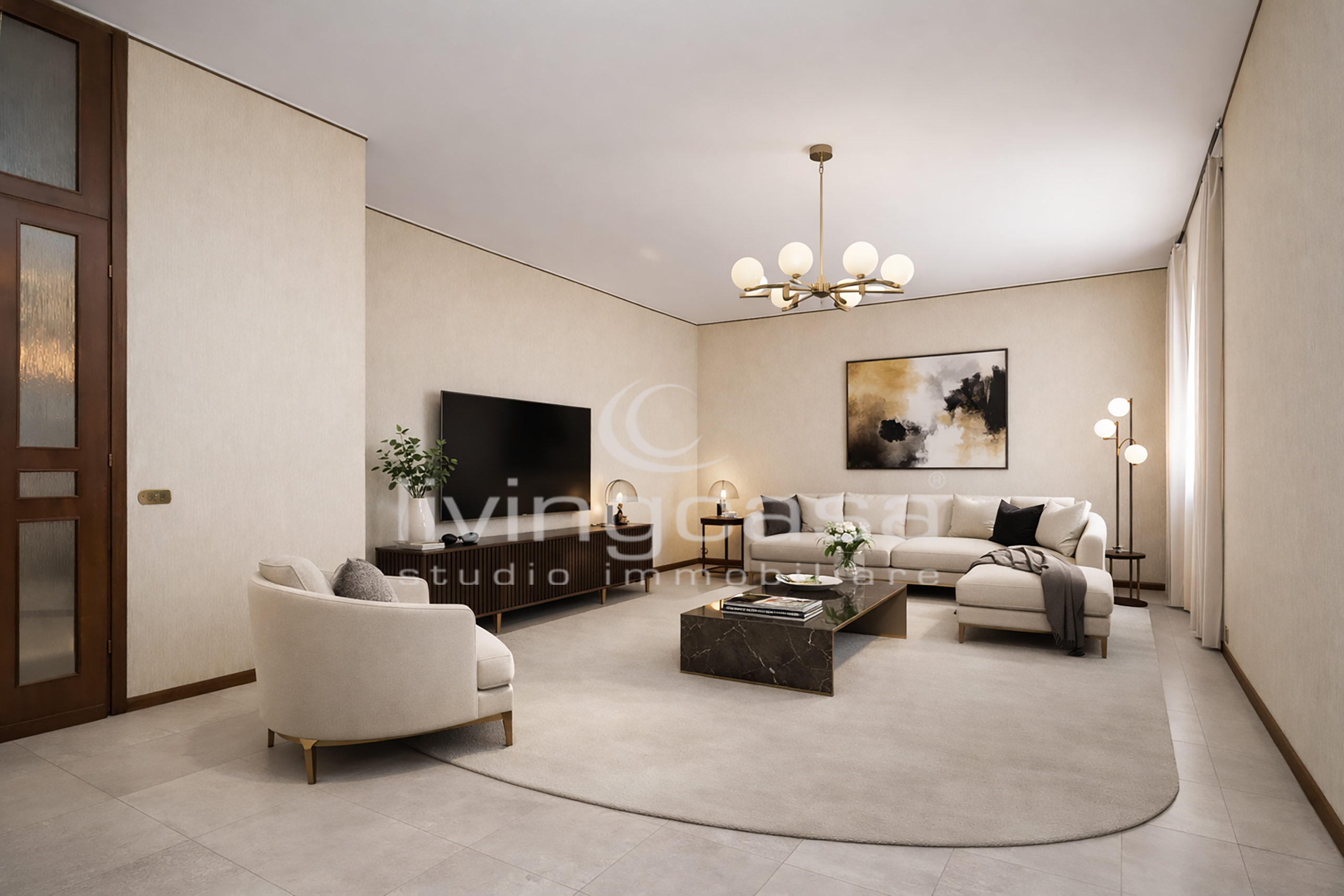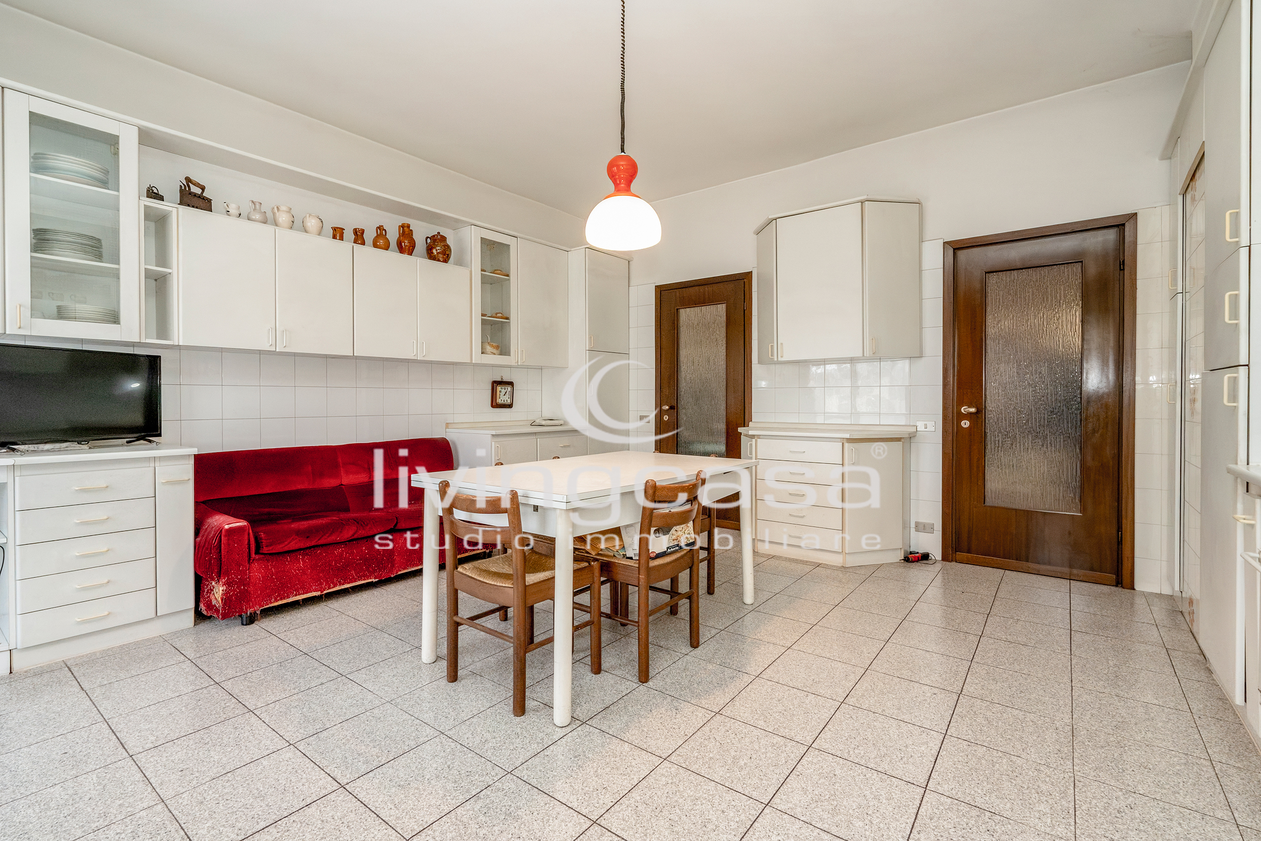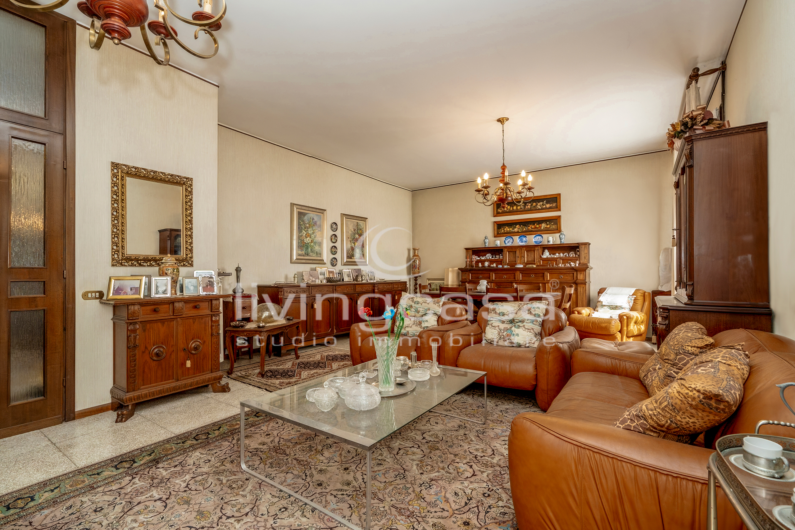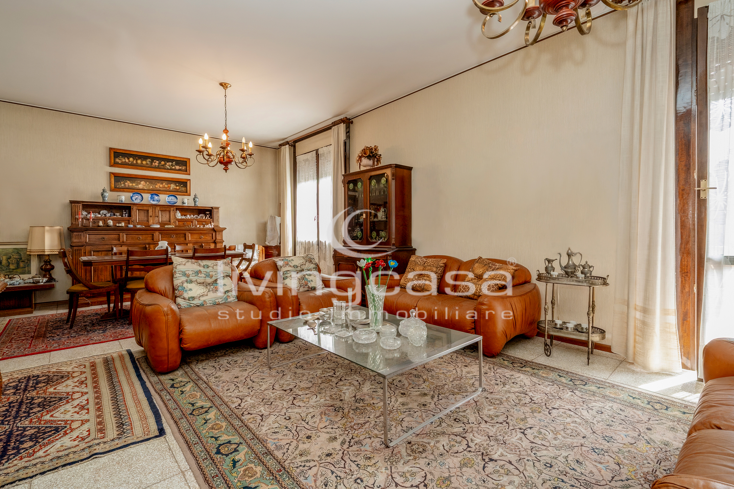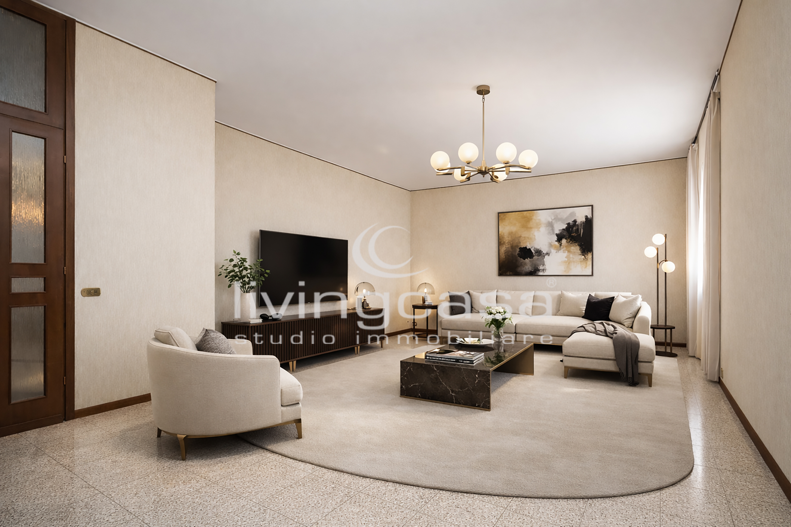 Il soggiorno con zona pranzo è uno di quegli ambienti che oggi non si costruiscono più: metrature generose dove puoi progettare un living importante, con divano ampio, zona TV e un tavolo vero, da vivere.