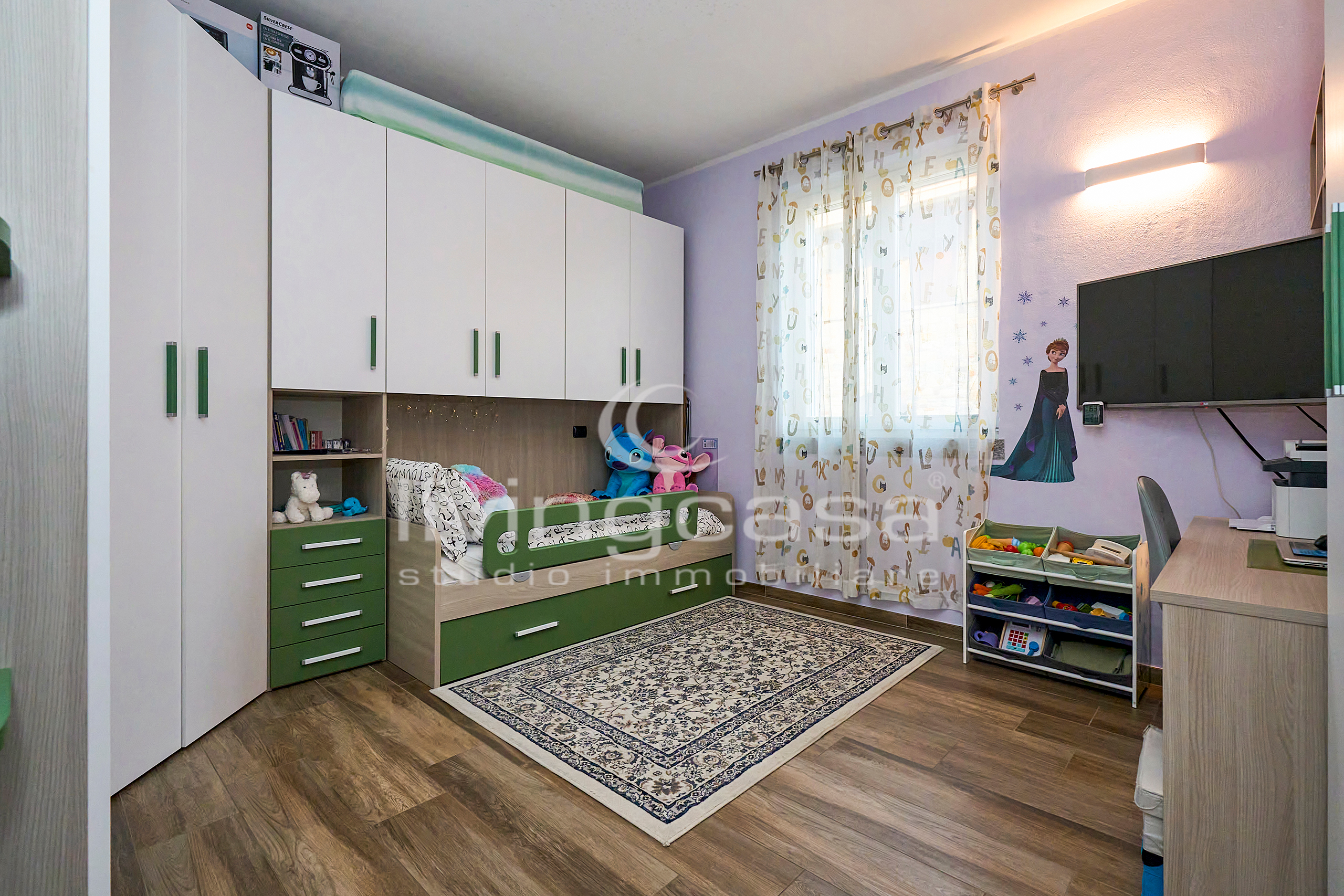 Il primo bagno, comodo e moderno, si trova nella zona giorno; mentre nella zona notte troviamo due camere da letto — una matrimoniale e una seconda stanza ideale come camera dei ragazzi o studio — e un secondo bagno finestrato, pensato per offrire comfort alla famiglia.