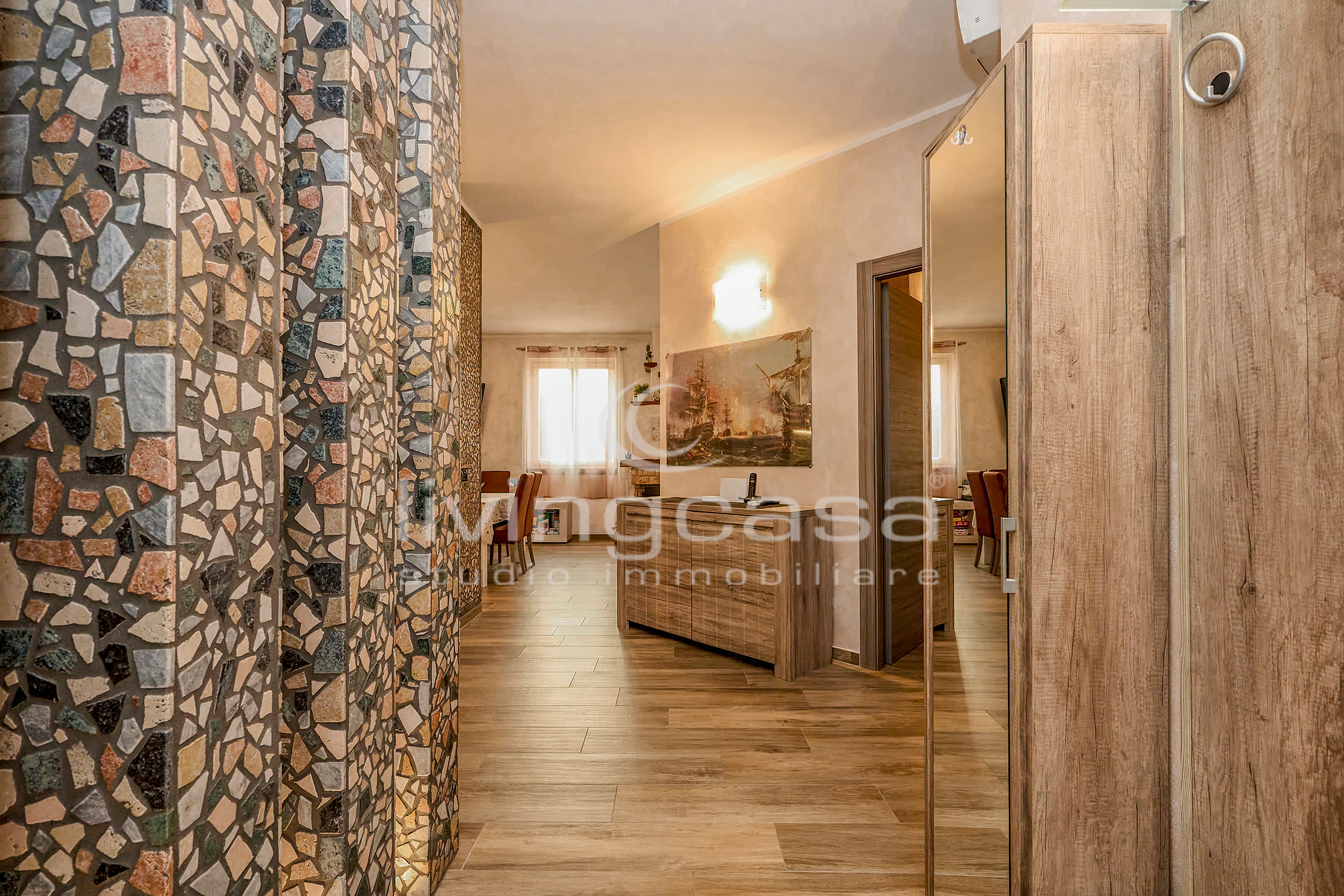 Le finiture sono moderne e di qualità: riscaldamento a pavimento, caldaia a condensazione, infissi in legno/alluminio e impianto di aria condizionata garantiscono comfort e risparmio energetico.