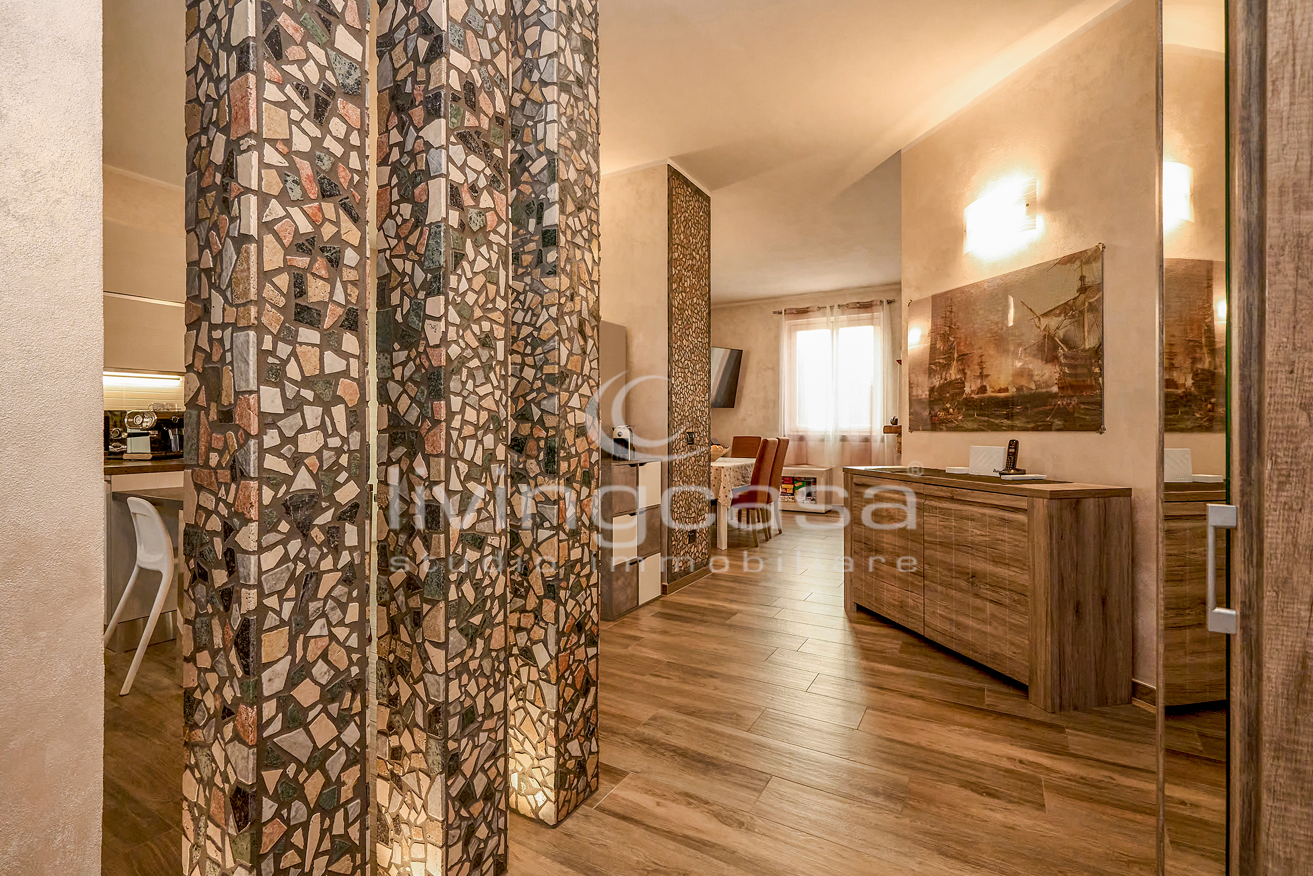 Da qui si accede all’abitazione, che fin dai primi passi trasmette una piacevole sensazione di calore e indipendenza.